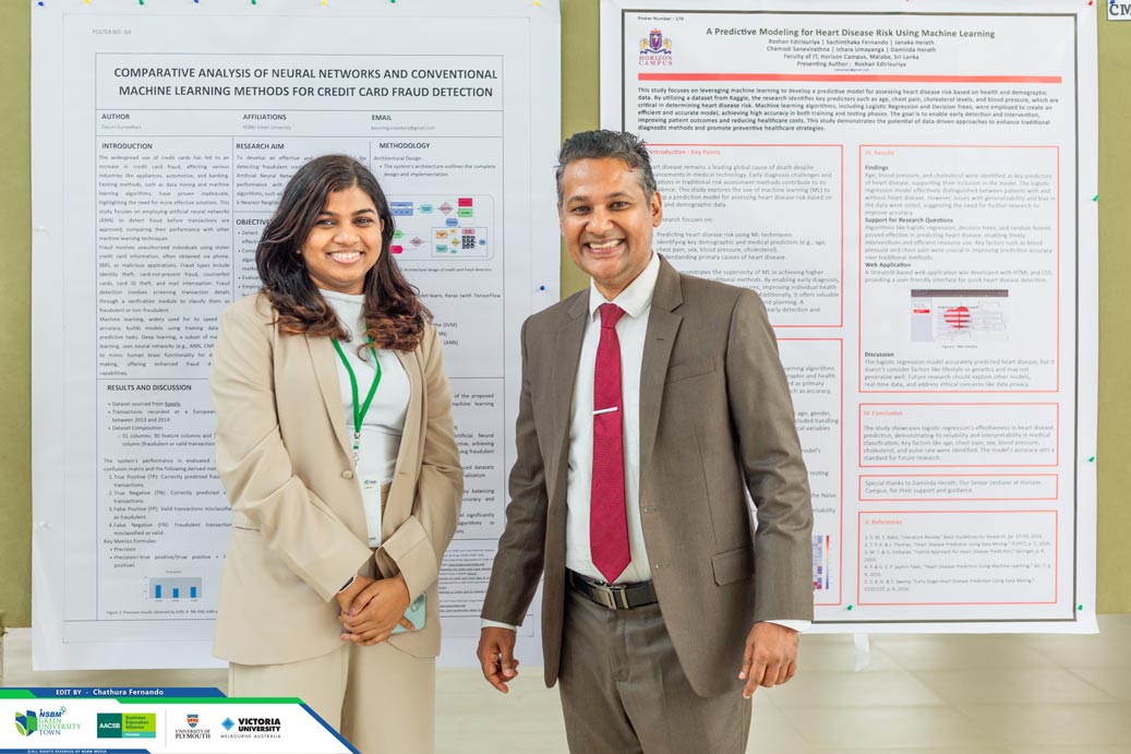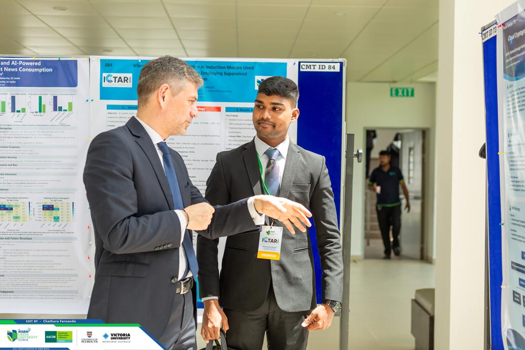 ICTAR 2024 comprised a poster presentation segment, displayed at the NSBM Student Centre premises. A total of 25 posters were showcased, highlighting the innovative research conducted by both local and international scholars. These presentations enriched the broader research discourse of ICTAR 2024, fostering knowledge exchange and academic collaboration.