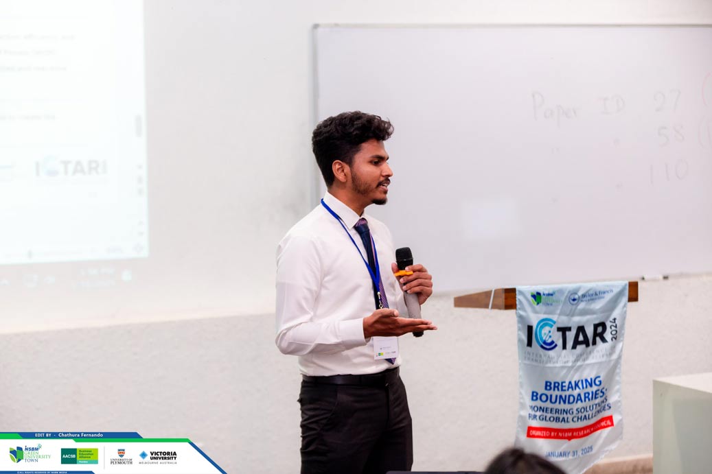 The International Conference on Transformative Applied Research (ICTAR) organised by the Research Council of NSBM Green University unfolded on 31st January at NSBM Premises. With the topical theme of “Breaking Boundaries: Pioneering Solutions for Global Challenges” ICTAR 2024 This international research conference convened a diverse community of scholars, researchers, and practitioners from around the globe to explore innovative approaches and breakthroughs in applied research across various disciplines.